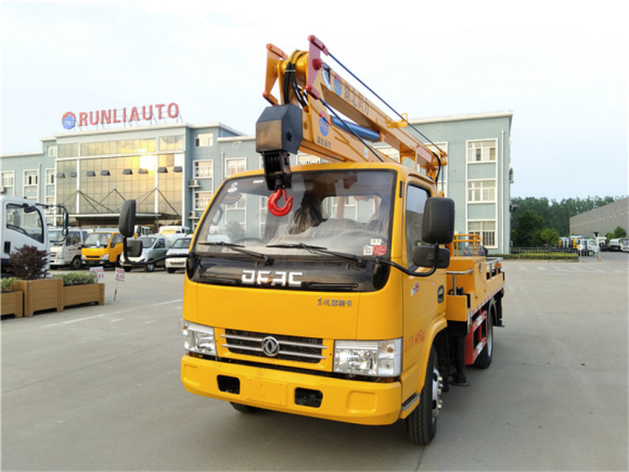 3、 吊臂:東風(fēng)13.5米高空車吊臂最大起重質(zhì)量1000kg,最大起吊高度7.4米,最大起吊幅度5.8米,鋼絲繩長度40米Φ8;起升機構(gòu)IQKN1B6Y;單繩拉力800 Kg,吊鉤1T;