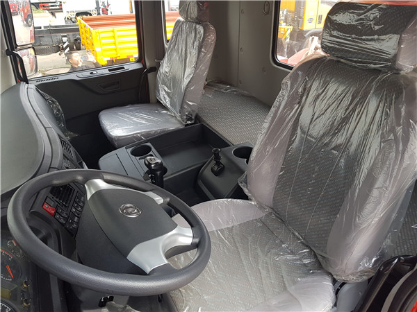 玉柴 290 馬力發(fā)動(dòng)機(jī),東風(fēng) T5 駕駛室,帶氣囊座椅、遙控中控(一體式)、四鎖合一,帶行駛記錄儀,2150+4400+1350mm 軸距,陜齒 9 檔帶高低檔變速箱,帶同步器、取力器,前橋5.5 噸后橋11.5噸,“雙卡加強(qiáng)型”平衡懸架, 300mm直通三層局部四層車架,帶連接板,11.00R20 鋼絲胎,原廠空調(diào);