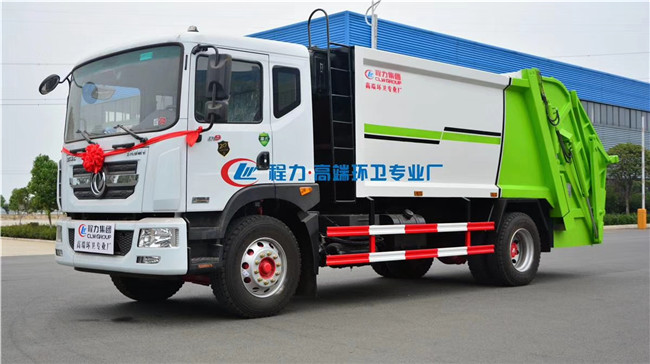 程力新廠東風D9壓縮垃圾車國六公告CL5181ZYSGH6,3950、4500軸距可選康明斯210馬力發(fā)動機,295真空胎尾部大落地斗、翻轉架、三角斗可選,環(huán)保齊全