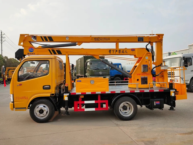 上車采用曲臂式結(jié)構(gòu)設(shè)計,作業(yè)高度可達13.5米。各工作臂均裝有定向平衡閥,用以提升臂架升、降、停止過程中的平穩(wěn)性。轉(zhuǎn)臺、工作斗雙工位操作,安全又方便。工作臂可360°全方位旋轉(zhuǎn),有效擴大作業(yè)范圍,提高工作效率。